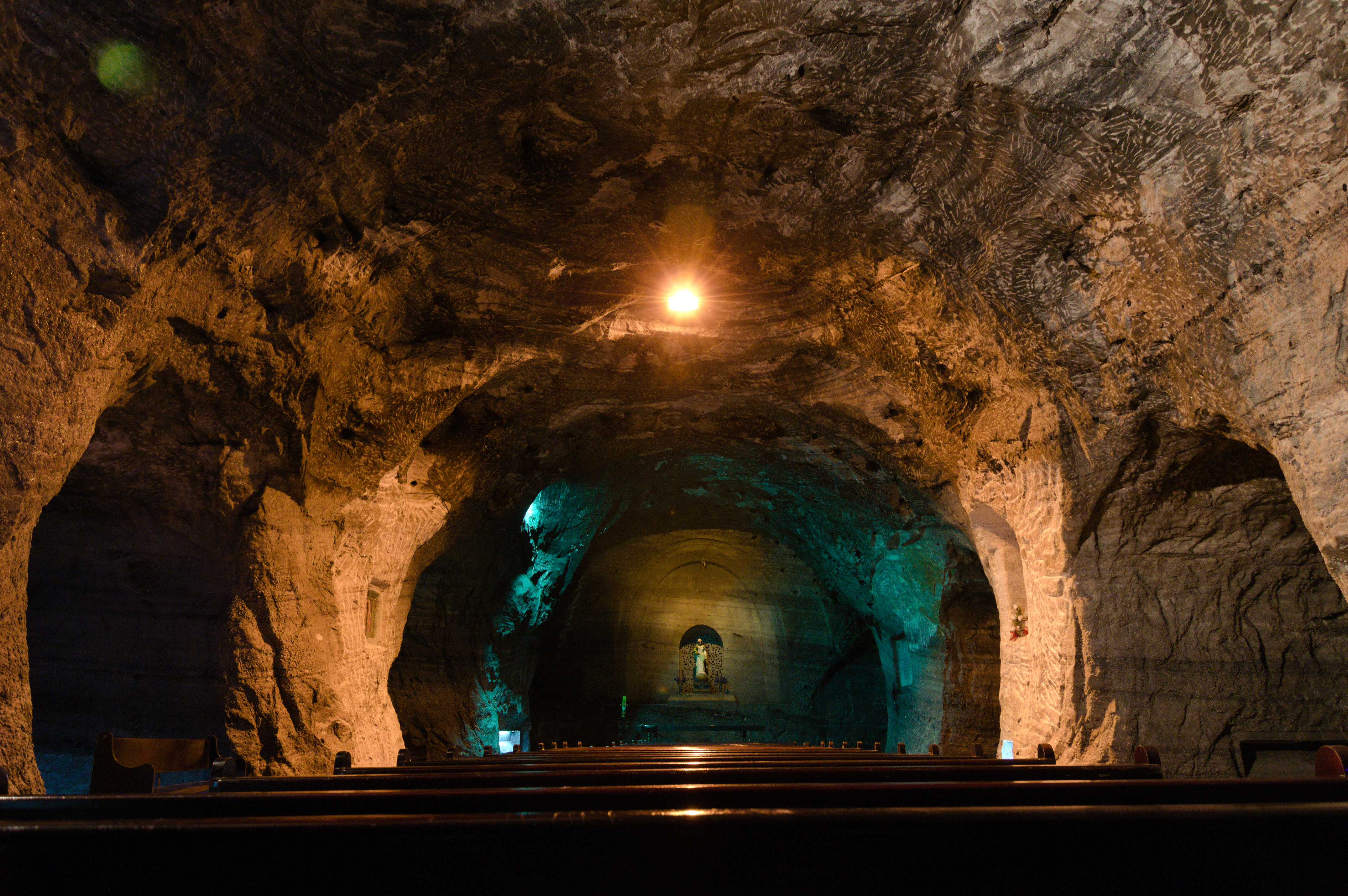 Zipaquirá’s stunning Catedral de Sal, 190m underground, was carved by removing 250,000 tons of salt; the resulting space is cinematically lit and packs a lot of ecclesiastical wow throughout its cavernous chapels and naves. It’s highlighted by the largest cross ever built in an underground church.