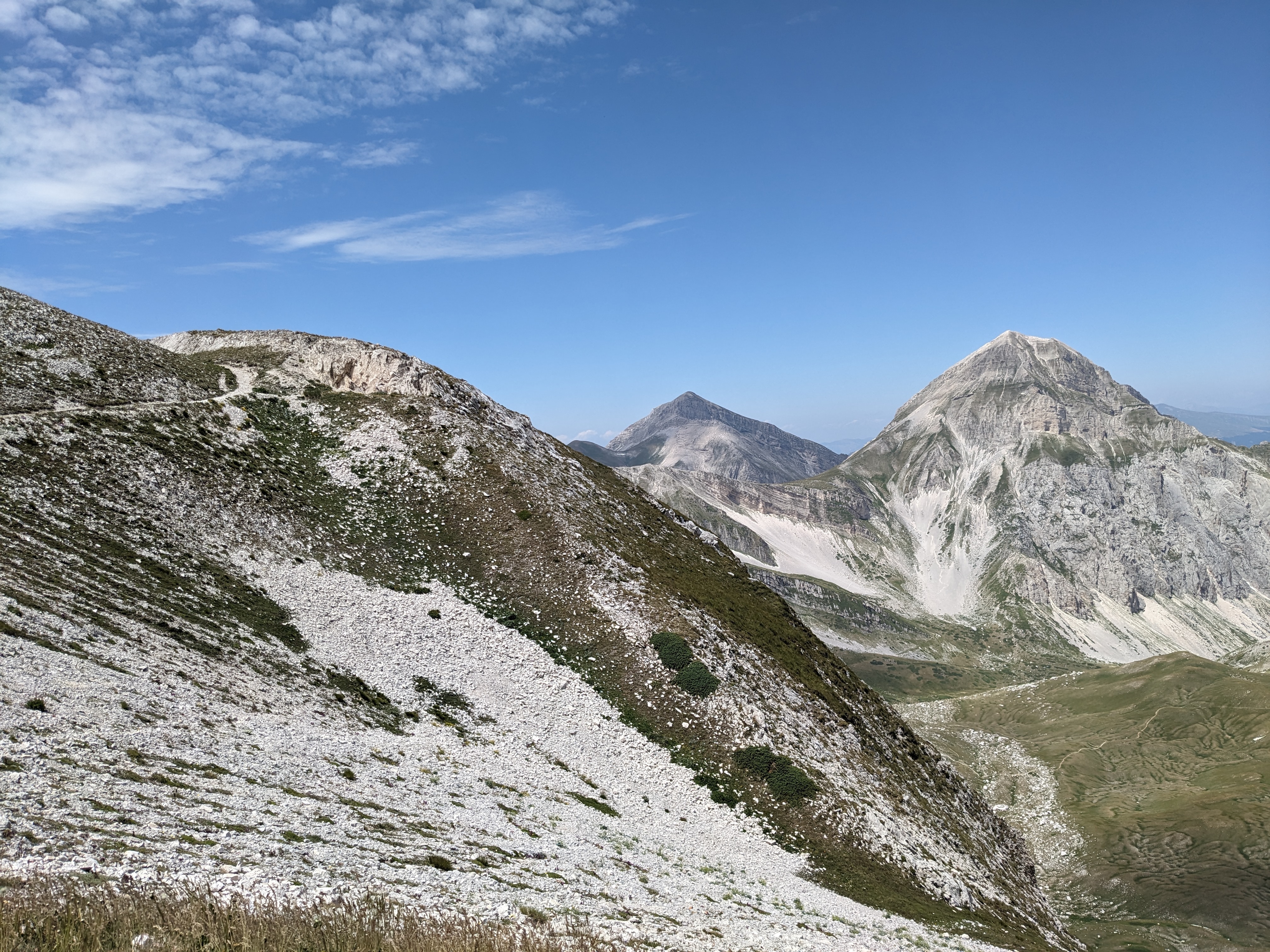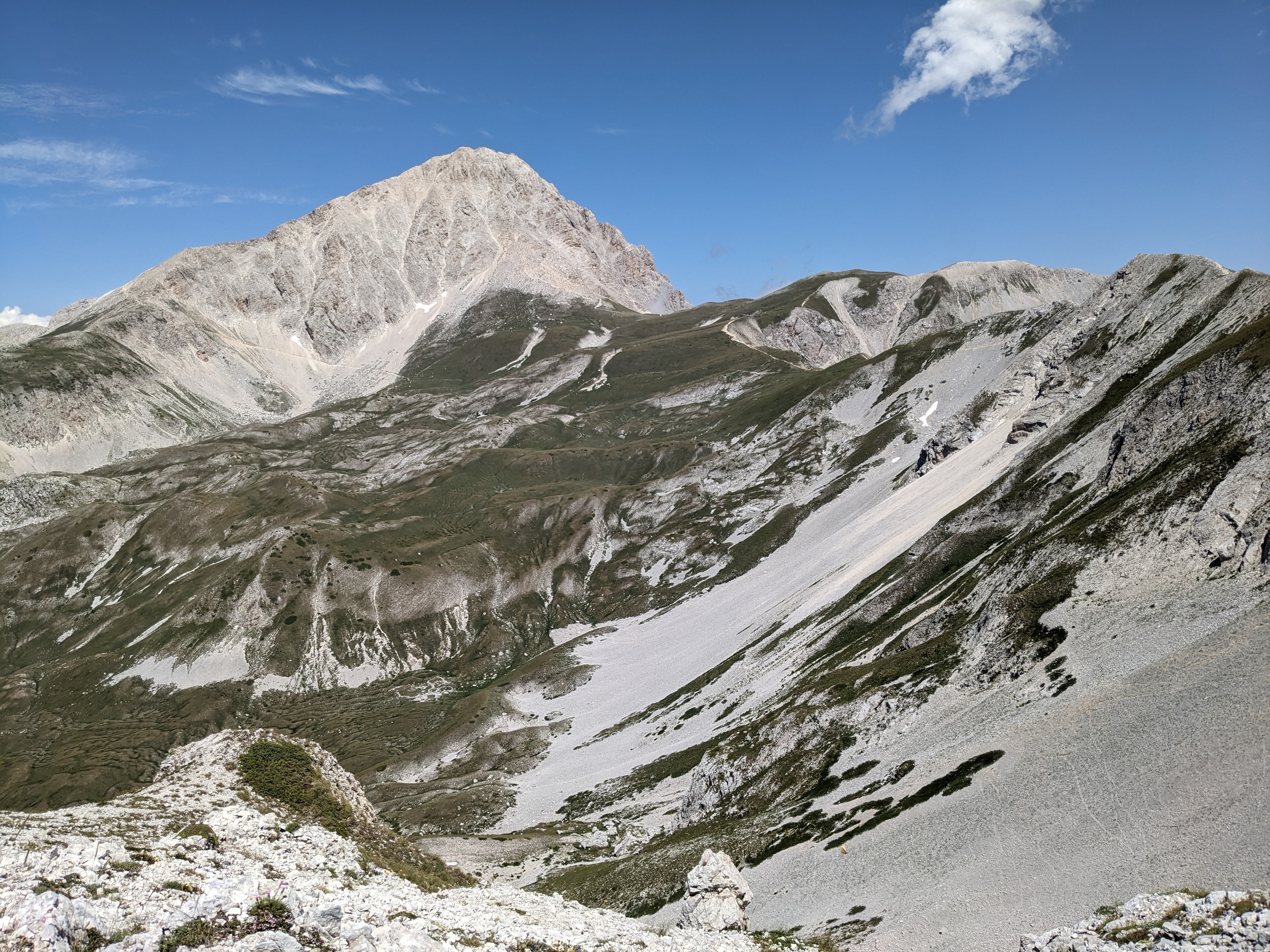 On Gran Sasso occurs the only Apennine glacier, the Calderone, at 2.775 metres located at the foot of Corno Grande; it is the southernmost glacier in Europe. Plains and valleys alternate between the peaks, such as Campo Imperatore, Val Mavone, Vallone d’Angora and Fosso Chiarino. Monti della Laga, compared to other Apennine mountains, has the characteristic of being mostly made of tertiary sandstone, a sedimentary rock less pearmeable than limestone, which led to the development of a complex surface water system, with many streams and waterfalls.